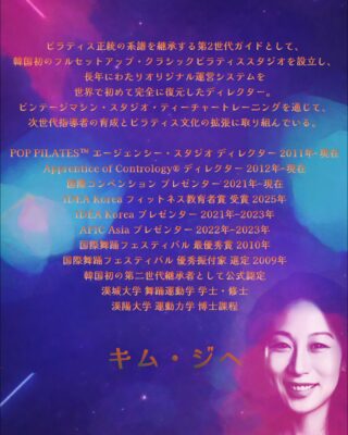 ※ POP PILATES™は、ジョセフ・ピラティスのスタジオ運営方式まで完全に復元した世界唯一のスタジオであり、すべてのクラスは第2・第3世代のガイドが担当します。