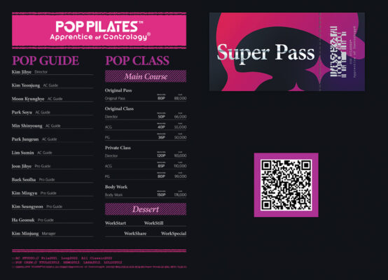 팝 필라테스(POP PILATES™)와 어프렌티스 오브 컨트롤로지(Apprentice of Contrology®)주최로 진행하는 리셉션이 포함된 캐주얼 워크샵으로 누구나 신청 가능하며, 2~3시간으로 구성되어 있습니다. 해당 클래스는 선착순으로 예약 가능하며 예약 취소가 불가한 클래스입니다.